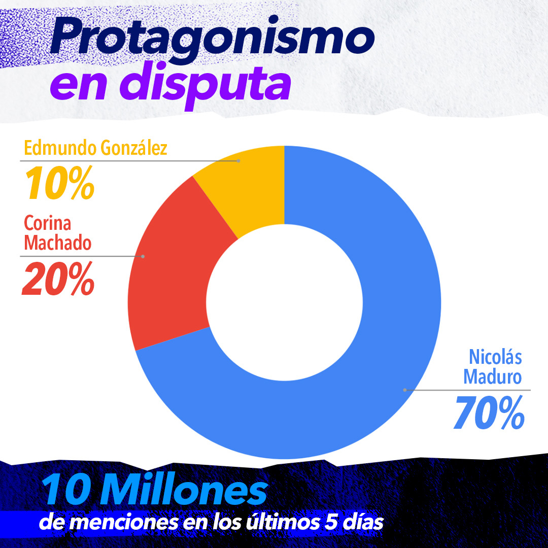 Los tres principales dirigentes de la política venezolana se disputaron un terreno digital que generó más de 10 millones de menciones en los últimos 5 días. A pesar de la gira internacional de Edmundo González y del presunto secuestro de Corina Machado, Maduro concentró una amplia mayoría de la conversación.