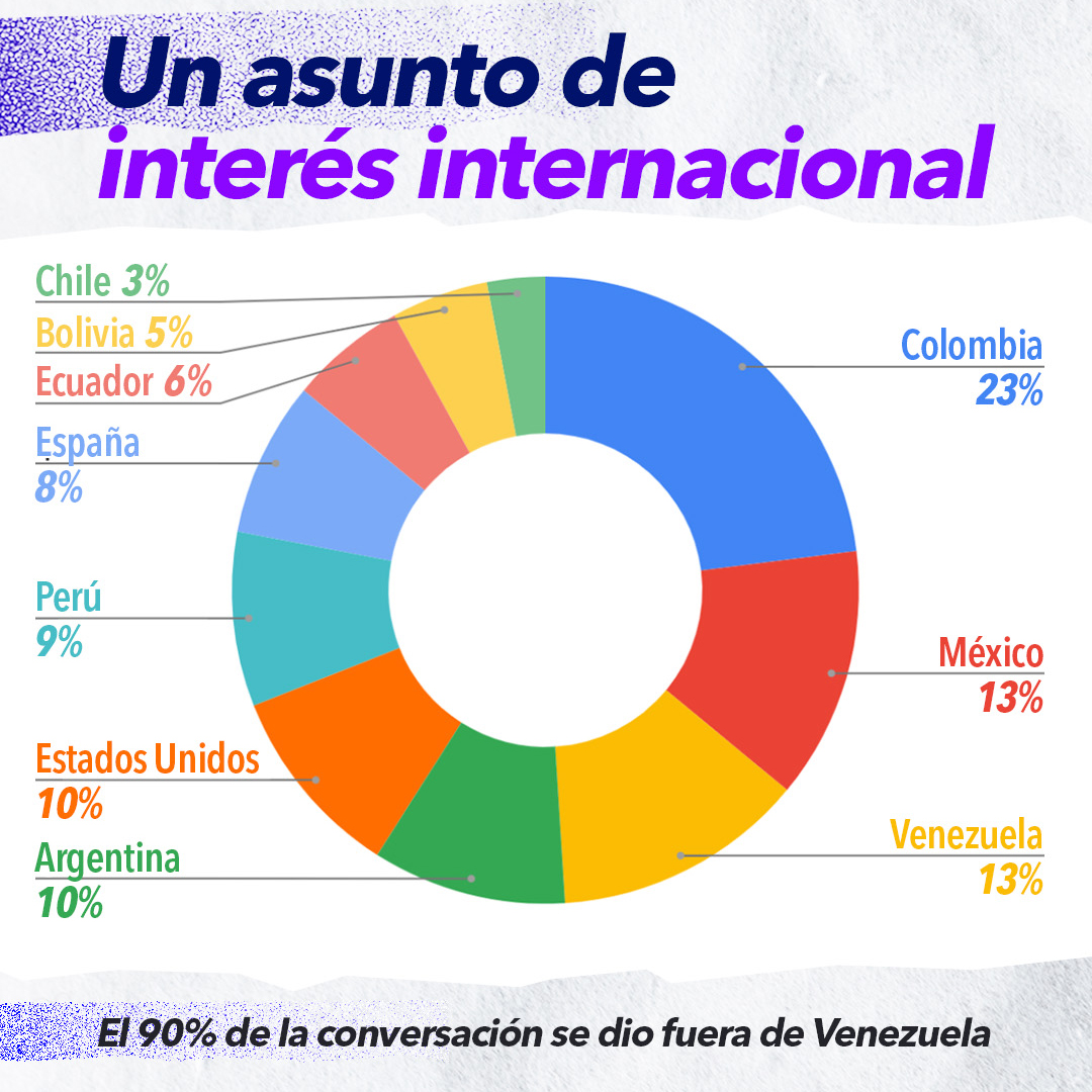 El presunto secuestro de María Corina Machado causó una explosión de noticias y comentarios de la comunidad internacional. Medios, dirigentes políticos y usuarios comunes no tardaron en denunciar y repudiar el hecho. No es casual que casi el 90% de esta conversación sea de fuera de Venezuela.