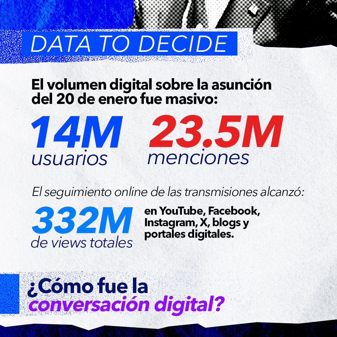 A su vez, el seguimiento on line de la transmisión de las distintas ceremonias de asunción alcanzó un nivel de 332M de views totales en YouTube, Facebook, Instagram, X, Blogs y portales digitales.